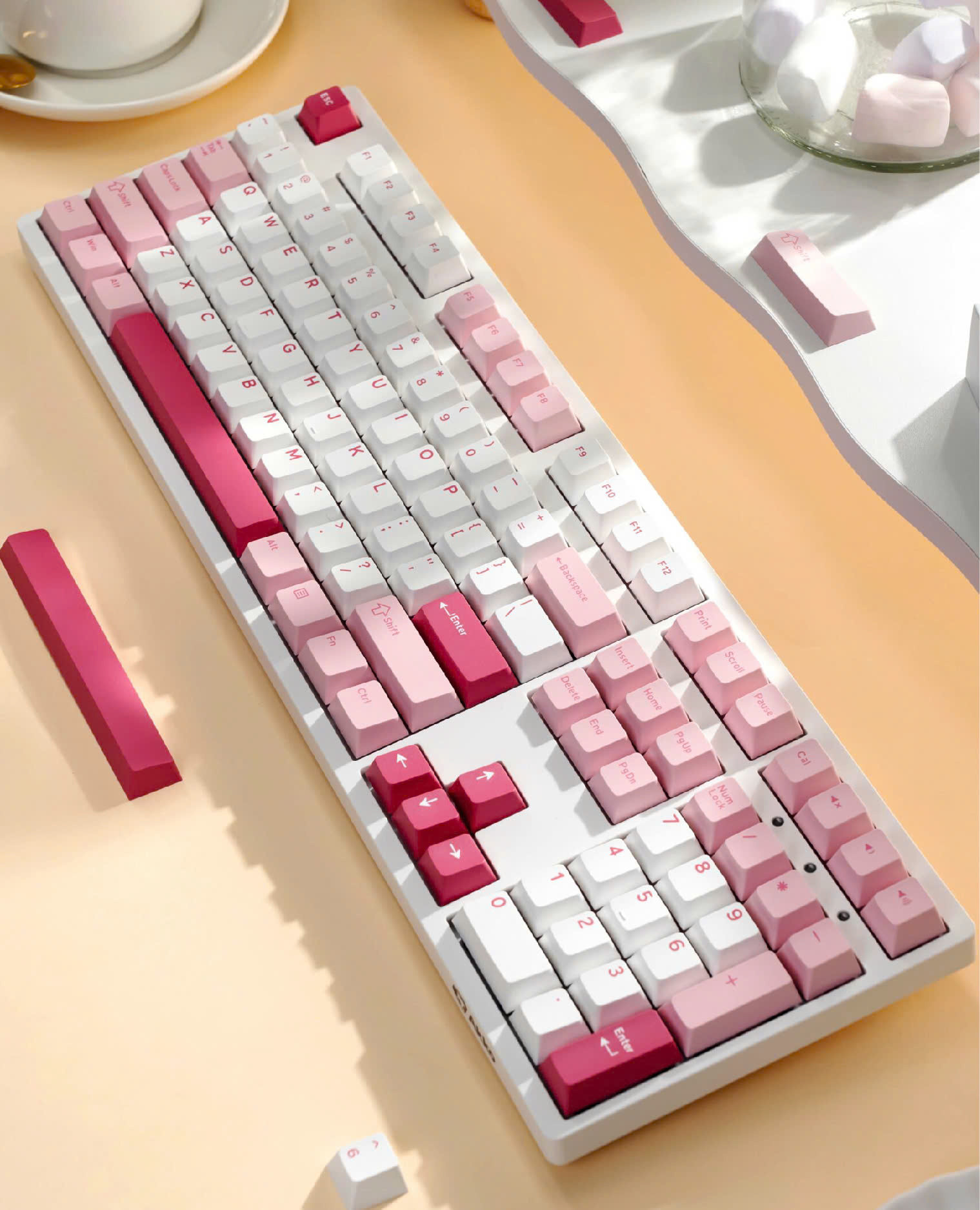 Sử dụng switch Akko Frost Pink cho cảm giác gõ ổn định, phản hồi tốt.